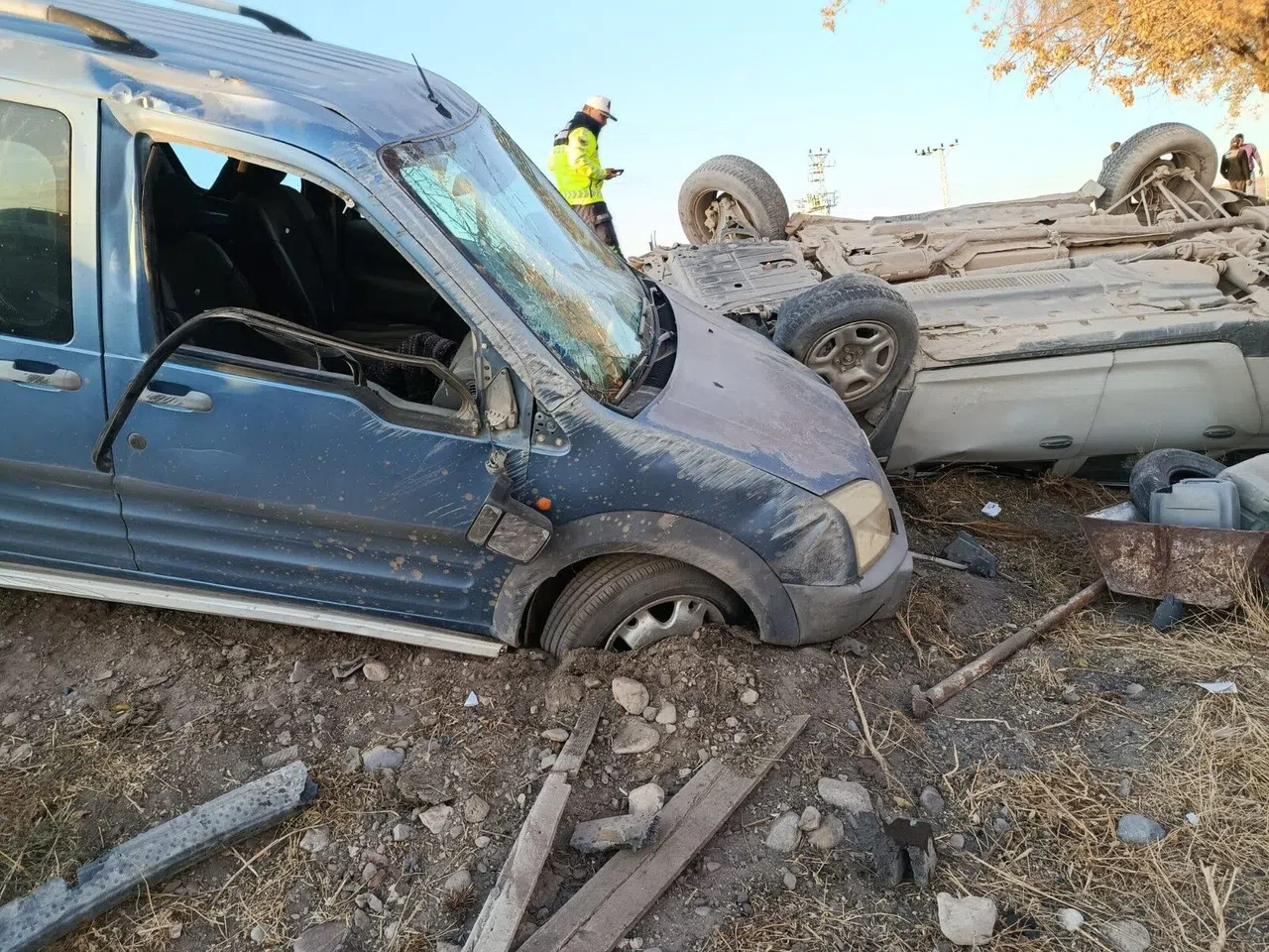 Çarpmanın şiddetiyle araçlarda büyük hasar meydana geldi. Her iki sürücü de yaralandı.
