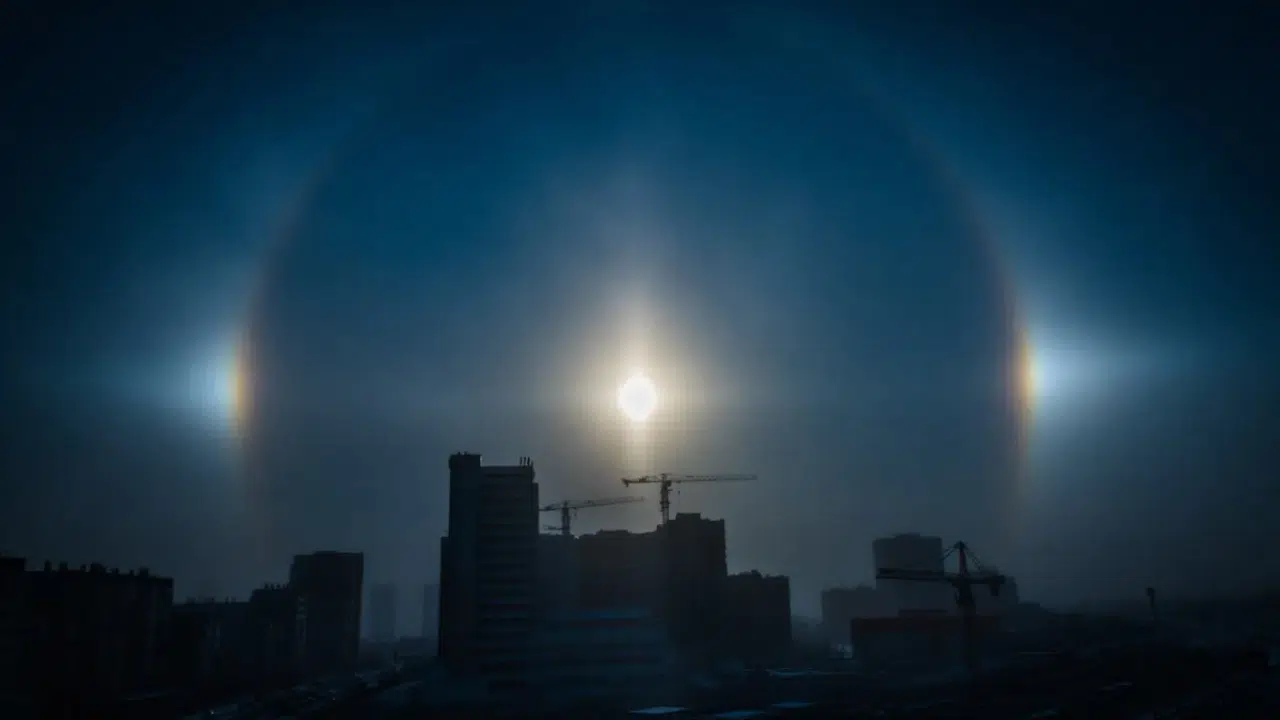 Sibirya’nın Krasnoyarsk kentinde hava sıcaklığı eksi 30 dereceye düşerken, gökyüzünde nadir görülen bir atmosfer olayı olan “halo” gözlendi. Işık halkası şeklinde ortaya çıkan bu doğa olayı, özellikle çok soğuk havalarda atmosferdeki mikroskobik buz kristallerinin Güneş ışığını kırmasıyla oluşuyor.