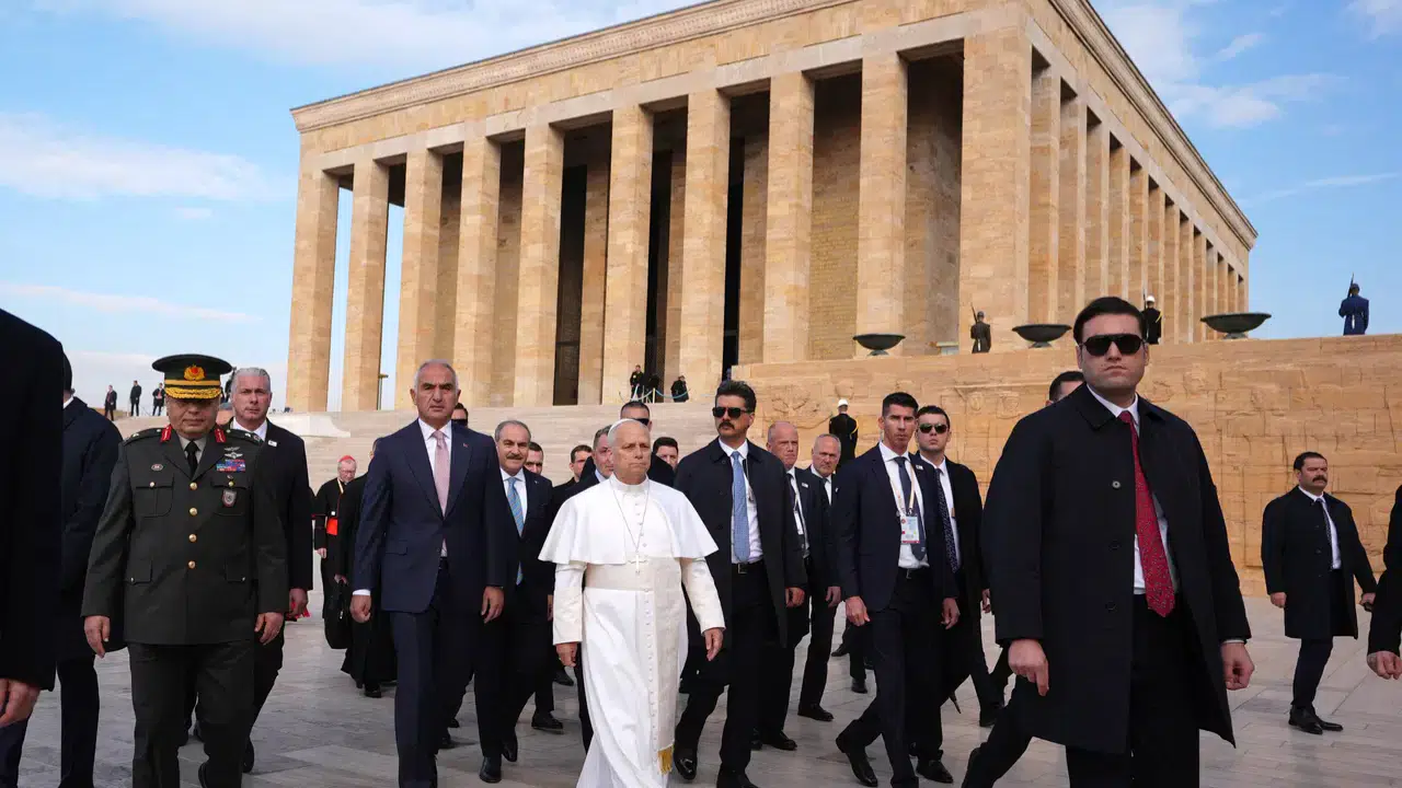 Papa 14. Leo, Türkiye'ye gerçekleştirdiği resmi ziyaret kapsamında ilk olarak Anıtkabir'i ziyaret etti. Türk askerlerinin taşıdığı çelenk ile Aslanlı Yol'dan yürüyerek mozoleye ulaşan Papa'ya, ziyaret boyunca Kültür ve Turizm Bakanı Mehmet Nuri Ersoy eşlik etti. Protokol kuralları çerçevesinde gerçekleşen törenin ardından tarihi deftere duygularını yazan Papa, dikkat çeken bir mesaj paylaştı.