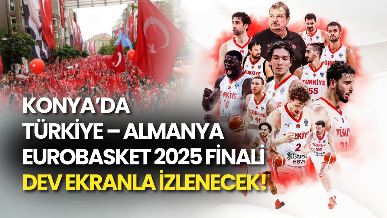 Türkiye A Milli Basketbol Takımı, EuroBasket 2025 finalinde Almanya ile kozlarını paylaşacak. Konya Büyükşehir Belediyesi, milli heyecanı binlerce sporsevere yaşatmak için Kılıçarslan Şehir Meydanı’na dev ekran kuracak.