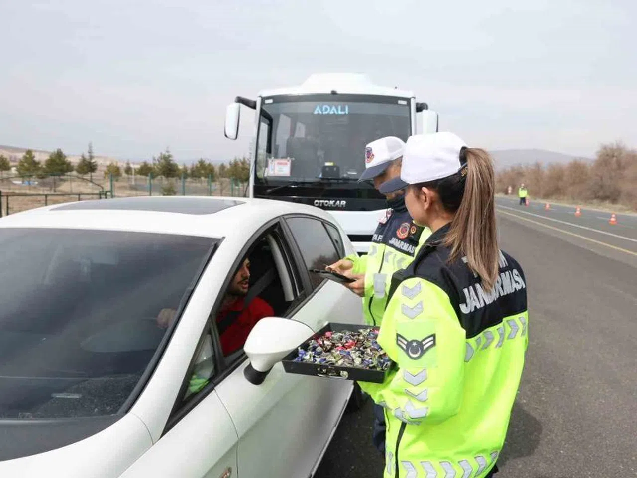 Avanos ilçesine bağlı Çavuşin köyünde kurulan jandarma uygulama noktasında durdurulan sürücüler, şeker ve kolonya ile karşılanarak bayramları kutlandı. Kapadokya’nın önemli geçiş noktalarından birinde gerçekleştirilen uygulamada ekipler, rutin trafik kontrollerinin yanı sıra sürücü ve yolculara iyi yol dileklerini iletti. Jandarmanın güler yüzlü yaklaşımı ve bayram ikramları, özellikle bölgeyi ilk kez ziyaret eden turistler tarafından ilgiyle karşılandı.