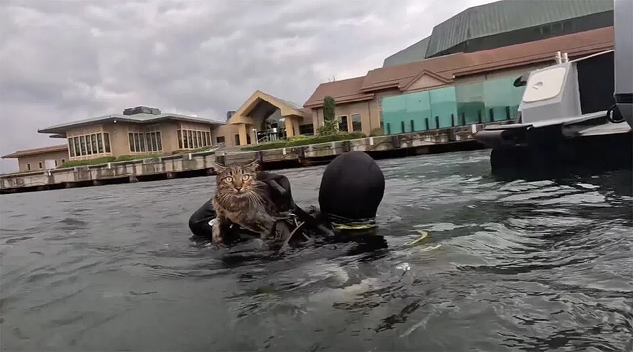 Beyoğlu Haliç mevkisinde, beton blokların arasında mahsur kalan bir kedi, dalgıç polislerin müdahalesiyle kurtarıldı.