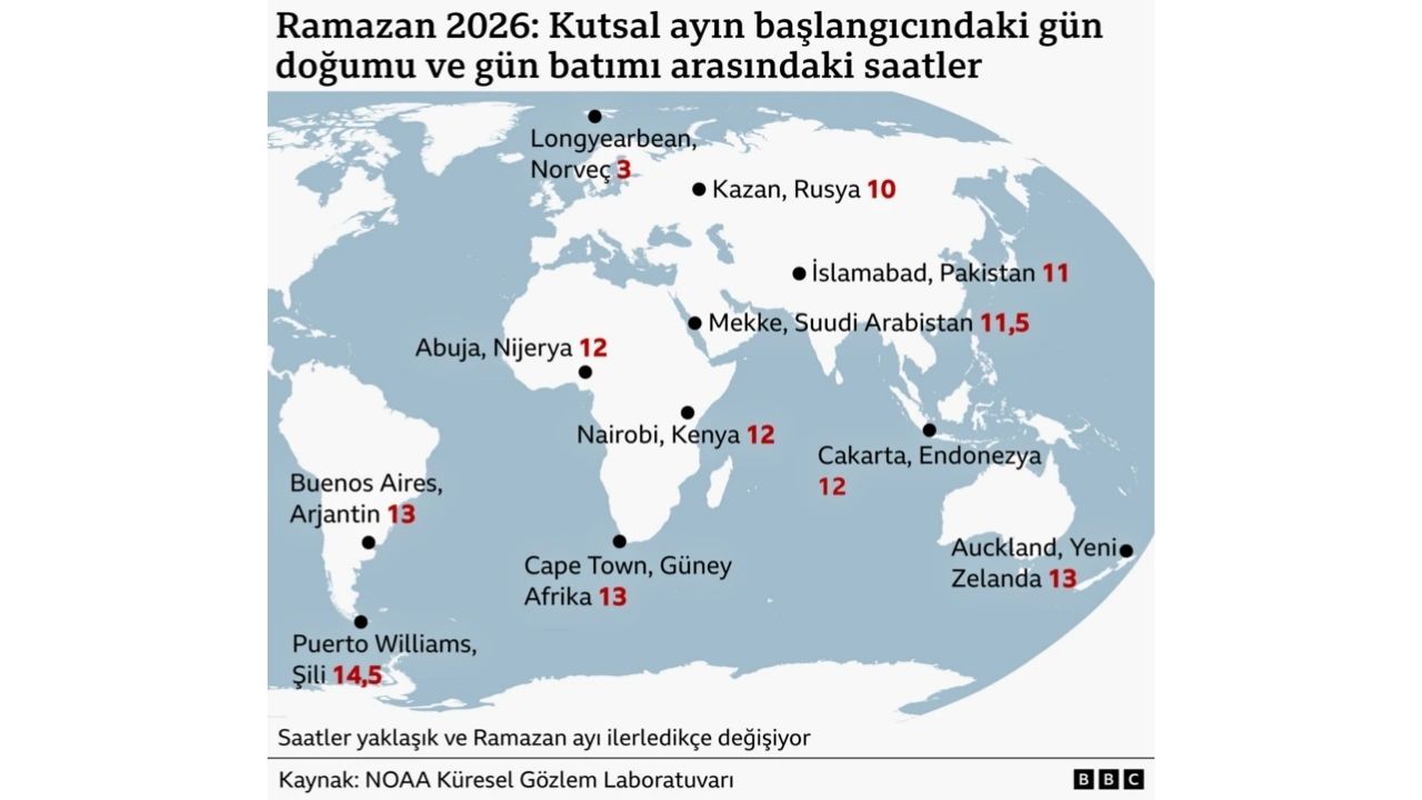 Bu yıl Güney Yarımküre'de yaz mevsiminin yaşanıyor olması, bu bölgedeki ülkelerde oruç sürelerinin daha uzun seyretmesine neden oluyor. Buna karşın, kış mevsimini geçiren Kuzey Yarımküre'de ibadet süreleri, Ramazan'ın yaz aylarına denk geldiği dönemlere kıyasla daha kısa sürüyor. Kuzey Yarımküre'deki bu kısalma eğiliminin 2031 yılına kadar devam etmesi öngörülüyor.