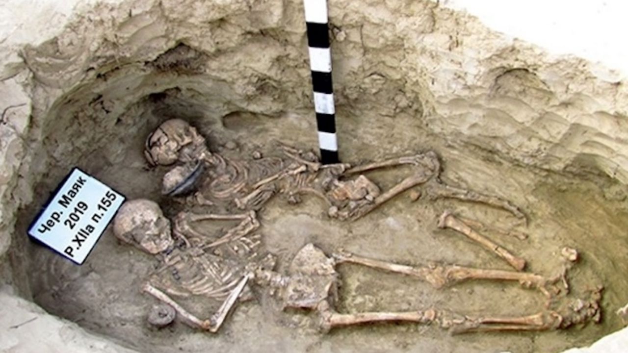 Dinyeper Nehri’nin sağ kıyısında konumlanan Chervony Mayak mezarlığı, MÖ 2. yüzyıldan MS 3. yüzyılın ortalarına kadar bölgede varlık gösteren Geç İskit kültürüne ev sahipliği yapıyordu. Bu topluluğun üyeleri, ölülerini çukur, niş ve katakomplu mezarlara gömme geleneğini sürdürüyordu. Bölgedeki mezar yapılarında toplu gömütlerin yaygın olduğu bilinirken; bazı kabirlerde üst üste dizilmiş on ikiye yakın iskelet, Kırım Yarımadası’ndaki benzer bir alanda ise en az 125 birey tespit edilmişti.