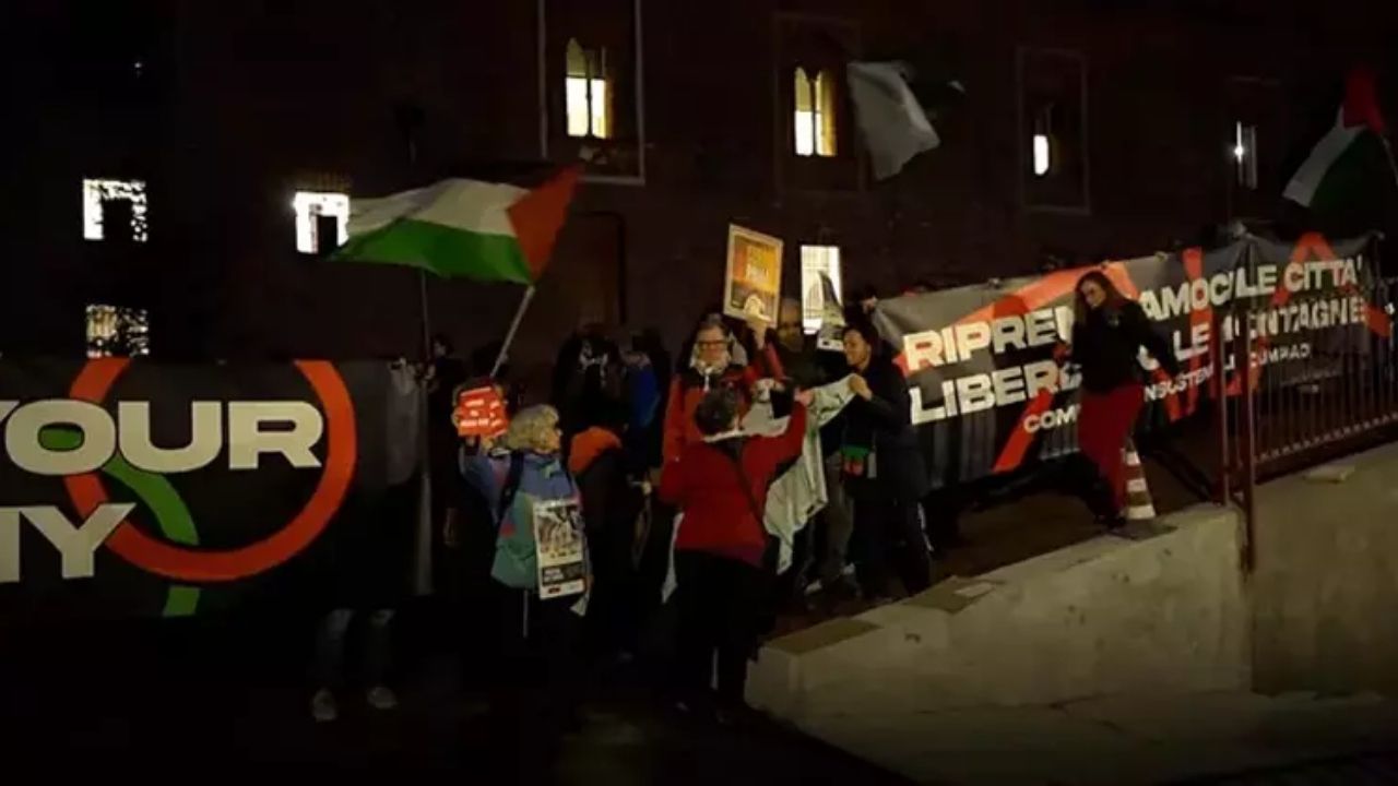 Milano sokaklarında İsrail’in oyunlardan men edilmesi için gösteri yapıldı
