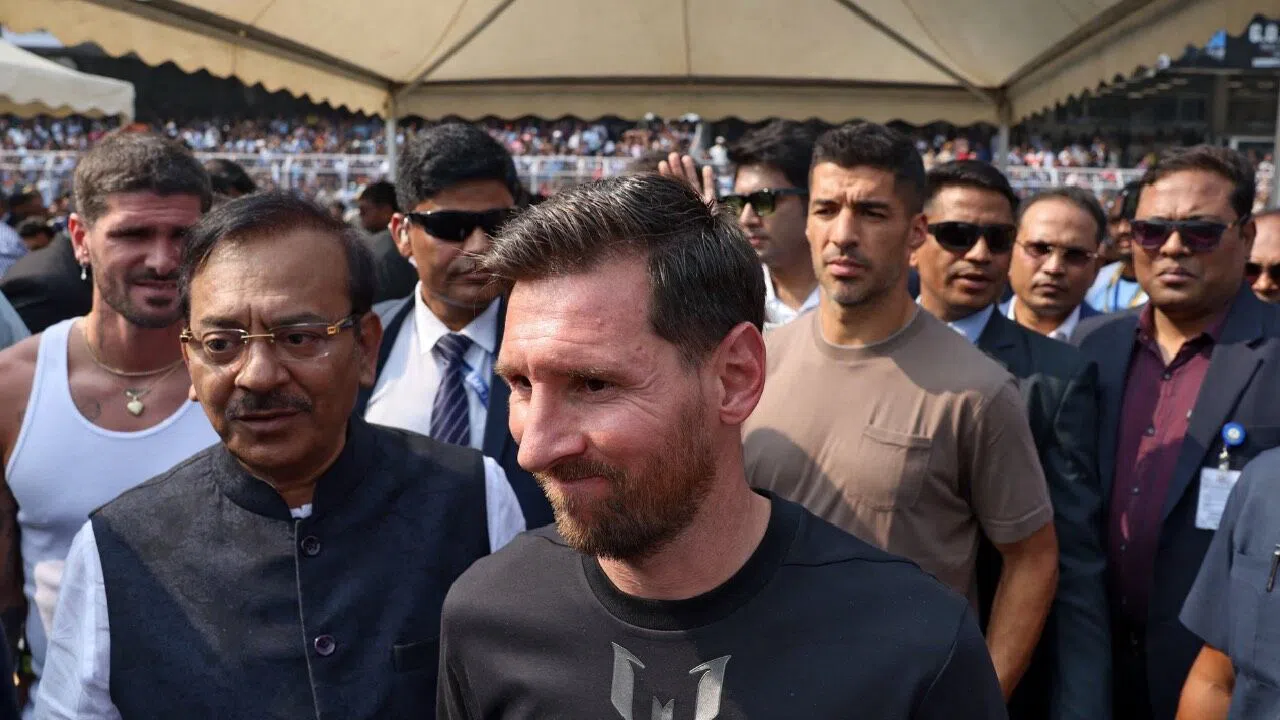 Messi’nin Hindistan turunun ilk gününde Arjantinli yıldız futbolcu, Inter Miami’den takım arkadaşları Luis Suárez ve Rodrigo De Paul ile birlikte bir stadyum etkinliğine katıldı. Yıldız oyuncunun stadyumda kısa bir süre kaldığı ve ardından alandan ayrıldığı belirtildi.