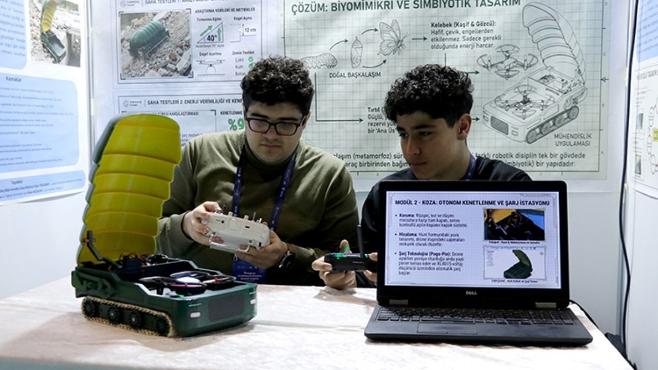 Kayseri'de eğitim gören lise öğrencileri Efe Özbey Akgül ve Mehmet Karaağaç, biyomimikri yöntemini kullanarak afet bölgelerindeki arama tarama faaliyetlerini kolaylaştıracak yenilikçi bir projeye imza attı. Osman Ulubaş Köşk Anadolu Lisesi ile Fen Bilimleri Anadolu Lisesi öğrencilerinin ortak çalışması sonucu geliştirilen robot, bir tırtılın kelebeğe dönüşme evrelerini teknolojik bir işleyişle simüle ederek ulaşılması güç noktalarda veri toplama yeteneği sunuyor.